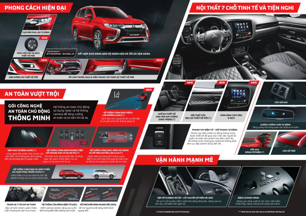 Ngoài ra, Outlander 2025 còn tích hợp hệ thống hỗ trợ lái an toàn, bao gồm cảnh báo điểm mù (BSW), cảnh báo phương tiện cắt ngang (RCTA), và hệ thống kiểm soát lực kéo (TCL). Camera 360 độ cung cấp cái nhìn toàn cảnh xung quanh xe, hỗ trợ đỗ xe và di chuyển an toàn trong các không gian hẹp.