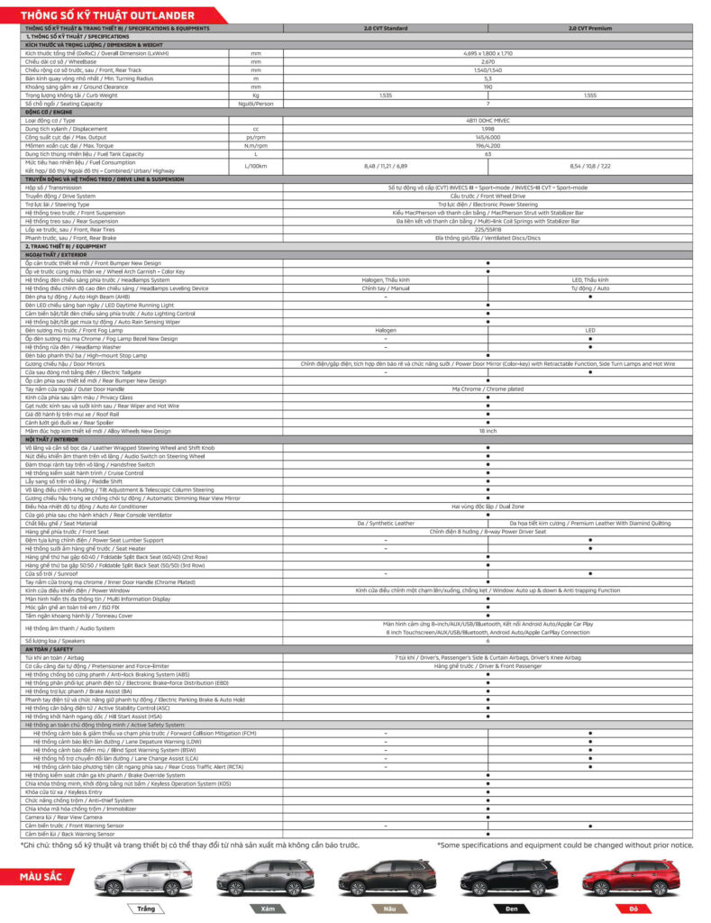 THÔNG SỐ KỸ THUẬT CỦA OUTLANDER